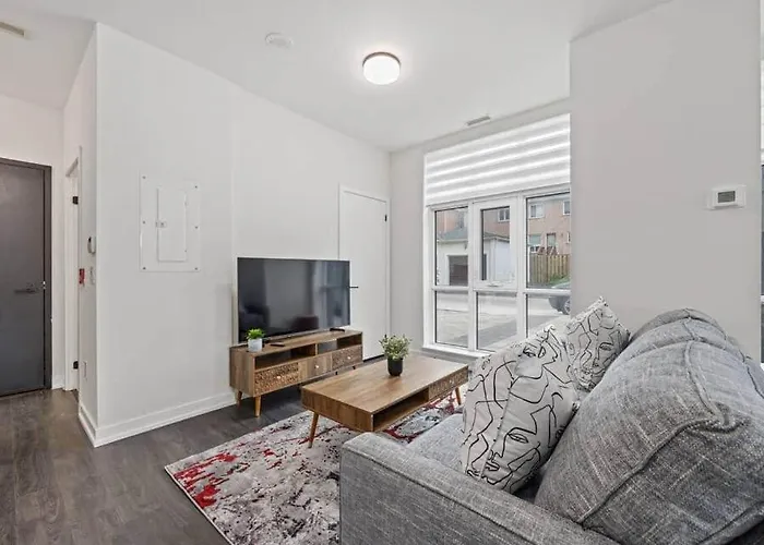 Disfruta de tus vacaciones en Toronto en el Chic 2-Bedroom Apartment With Parking Toronto. Ideal para quienes buscan una experiencia auténtica, está situado a unos 15 minutos en coche del Barrio chino y a 7 km del Museo Real de Ontario. Este apartamento cuenta con Wi-Fi y un aparcamiento privado gratuito para los que viajan en coche.